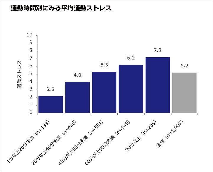 イギリスの西イングランド大学は、5年間にわたり2万6000人以上の労働者に対して通勤が労働上の幸福度に与える影響を調査し、通勤時間が長くなるとワークライフバランスの満足度が低下し、ストレスが増えてメンタルヘルスが悪化するという分析結果を発表しています。